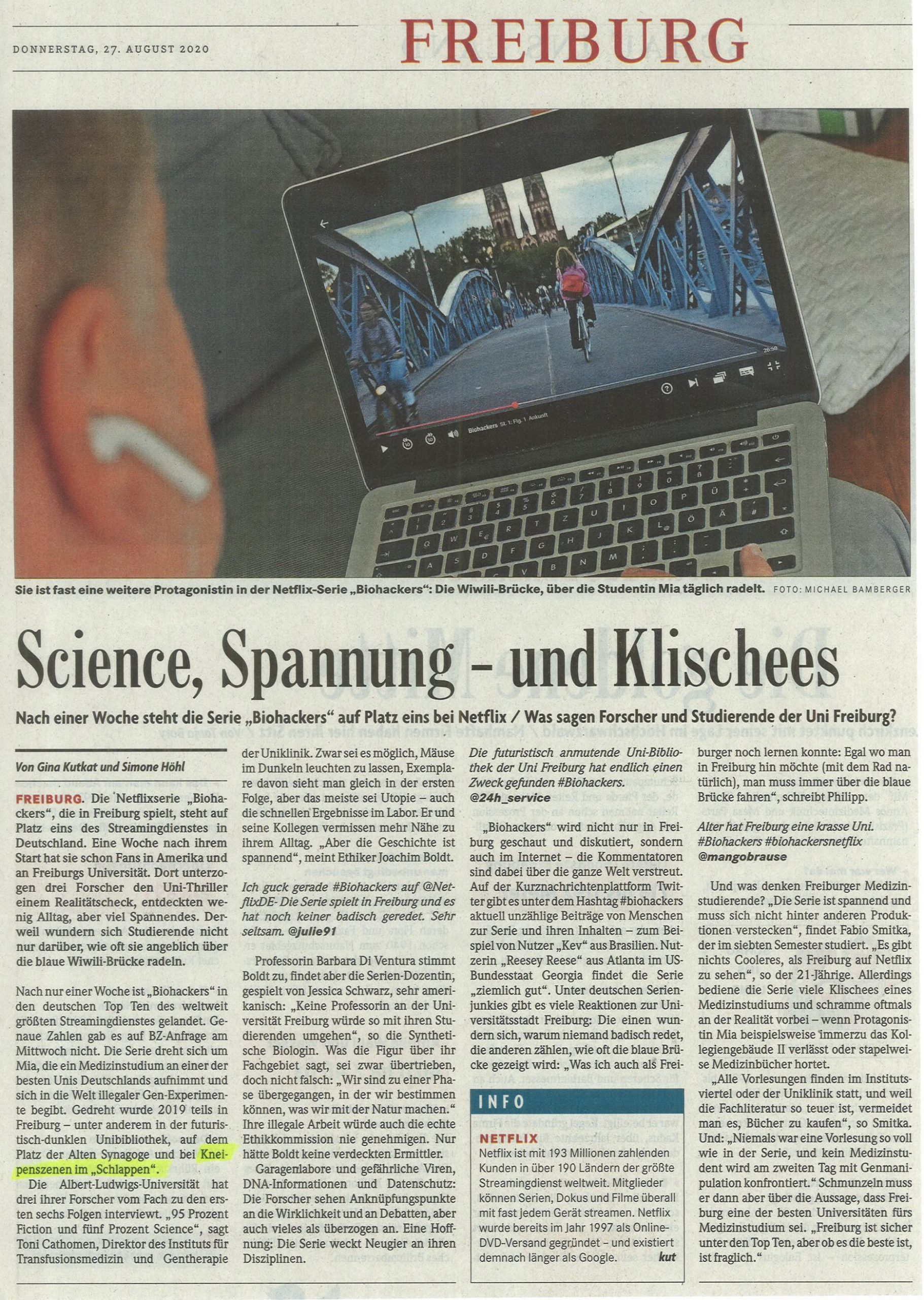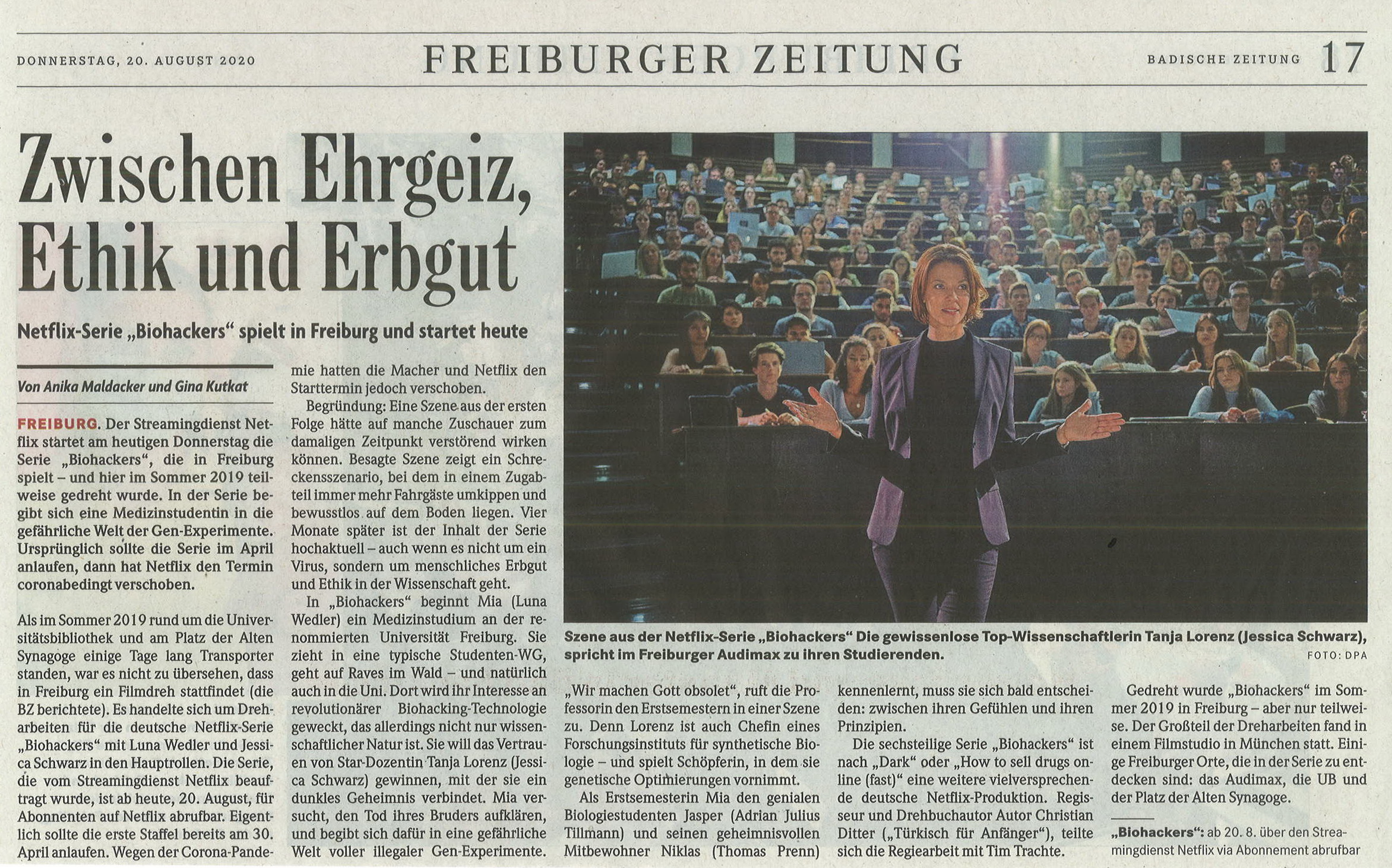 Unser Tip: Die Netflix-Serie „Biohackers“ spielt außer an vielen Drehorten in Freiburg auch im Schlappen. Ab sofort auch die zweite Staffel!