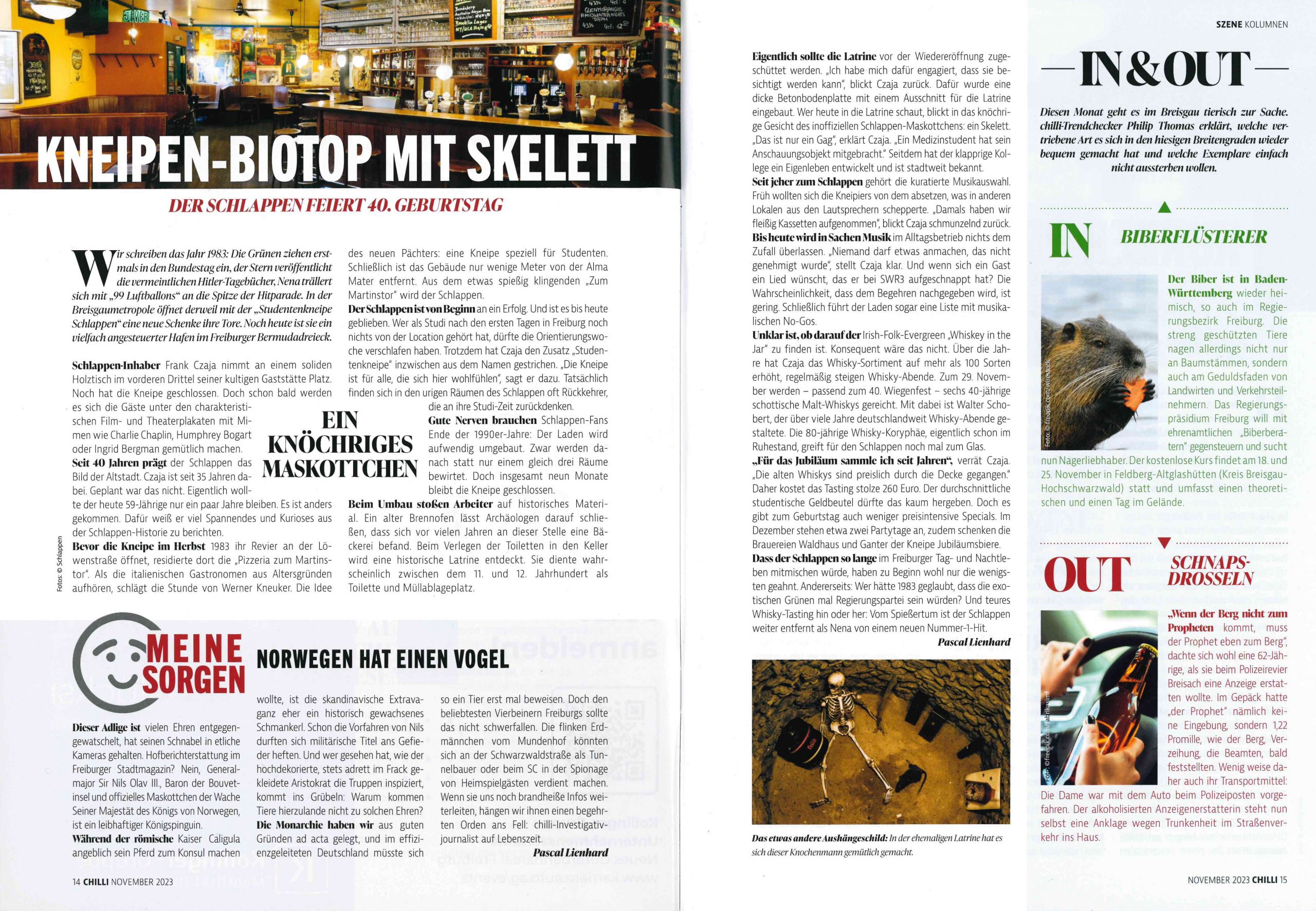 Auch der Badischen Zeitung, dem Magazin Chili, dem Netzwerk Südbaden, sowie dem Whisky-Guide Deutschland seien für ihre Berichte gedankt.
